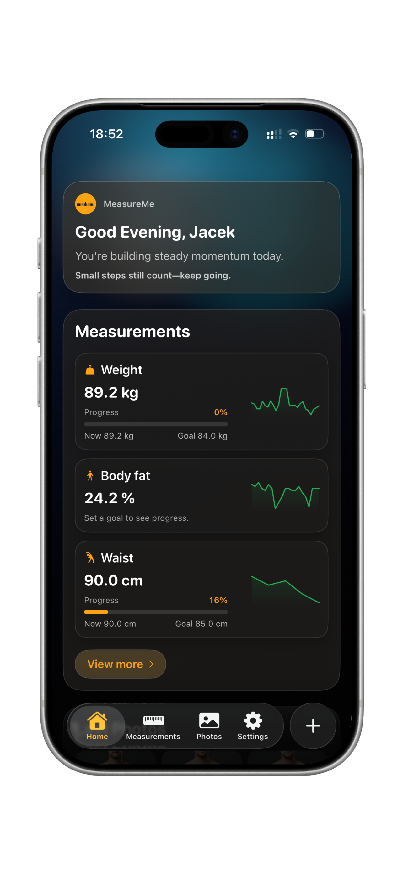 MeasureMe helps you stay consistent with private, offline-first tracking—built to be calm, clear, and fast.